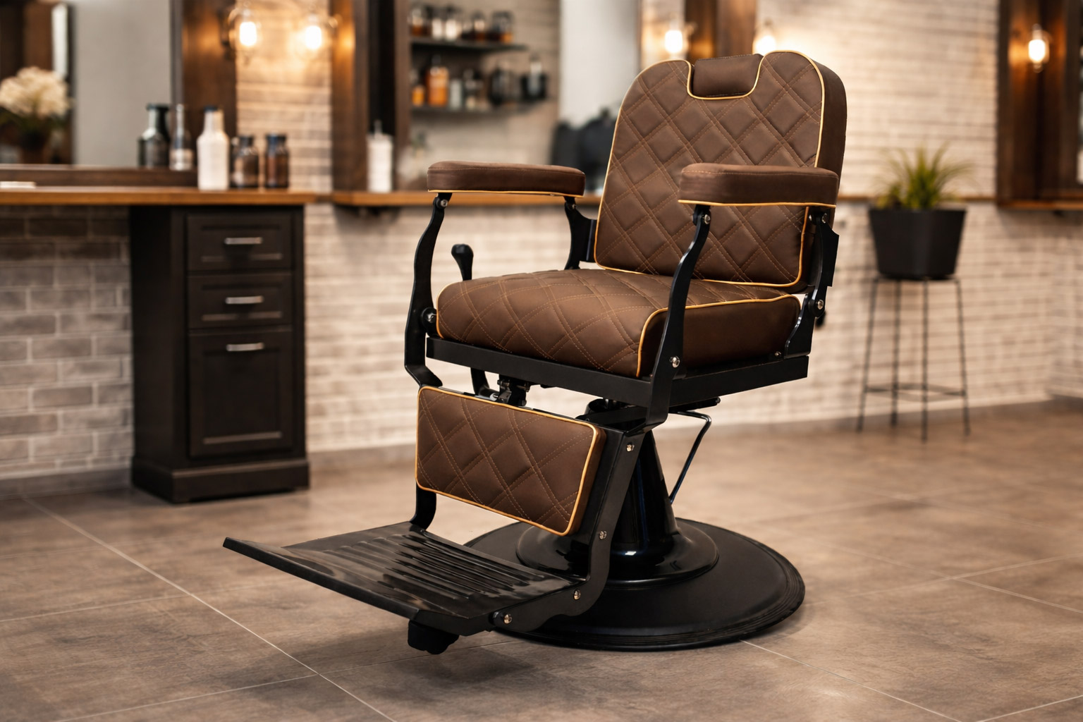 Questo significa che ogni scelta di arredo comunica qualcosa di preciso. Una poltrona in pelle nera con base cromata dice una cosa. Una poltrona in velluto bordeaux con finiture in ottone dice un’altra. Un banco in ferro battuto con piano in legno grezzo dice ancora qualcosa di diverso. Non esistono scelte neutre nel barber shop: esistono scelte coerenti o incoerenti con l’identità che vuoi costruire.